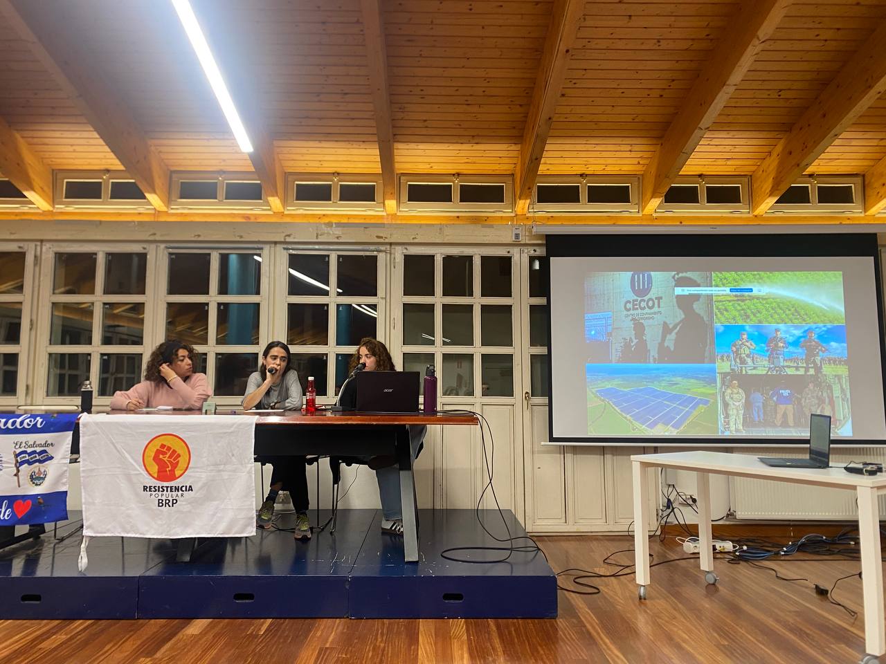 Las ponentes ofrecieron un análisis detallado del contexto socio‑político salvadoreño, marcado por transformaciones profundas en materia de gobernanza, participación social y gestión del territorio. Expusieron cómo sus organizaciones acompañan a comunidades afectadas por proyectos extractivos, turísticos y de infraestructura que amenazan sus medios de vida, sus recursos naturales y su permanencia en el territorio. A través de un enfoque jurídico, social y político, se presentaron los elementos clave para comprender la importancia de la defensa del territorio y los mecanismos institucionales que, lejos de garantizar derechos, están contribuyendo a una crisis sostenida de derechos humanos. Las intervenciones permitieron comprender la complejidad del escenario actual y la necesidad de fortalecer redes de solidaridad internacional.